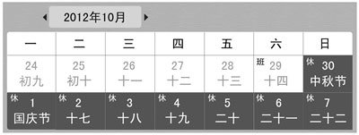 2012年中秋国庆放假安排